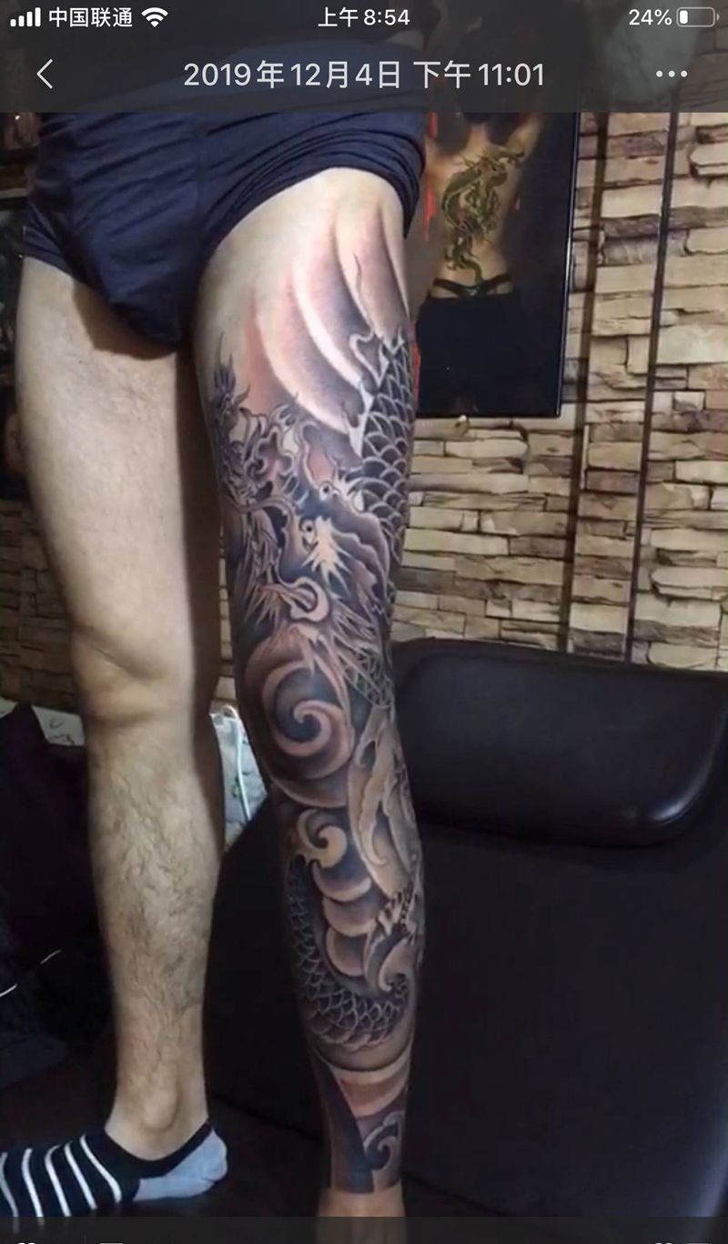• T网红王老大花腿龙纹身图片_腿部新传统纹身图案