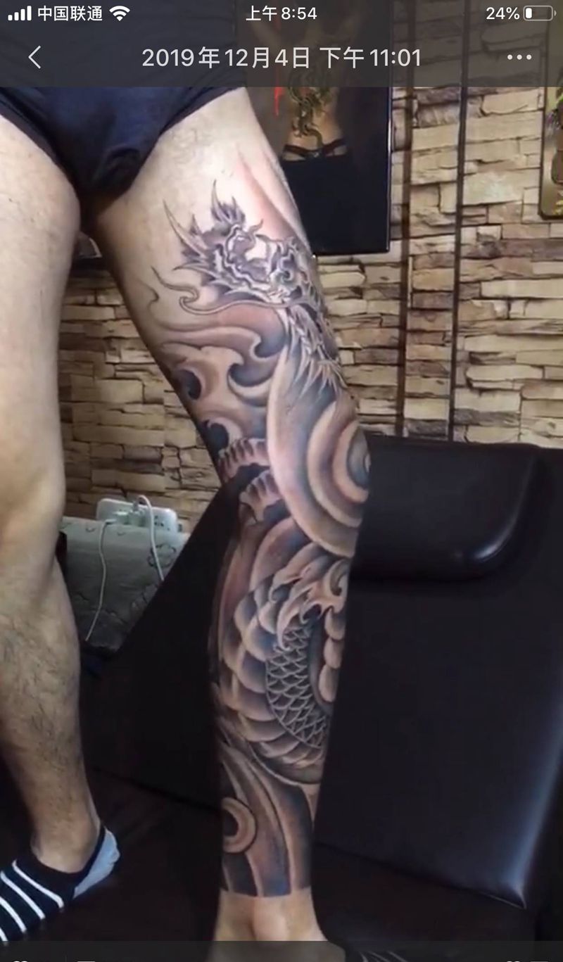 • T网红王老大花腿龙纹身图片_腿部新传统纹身图案