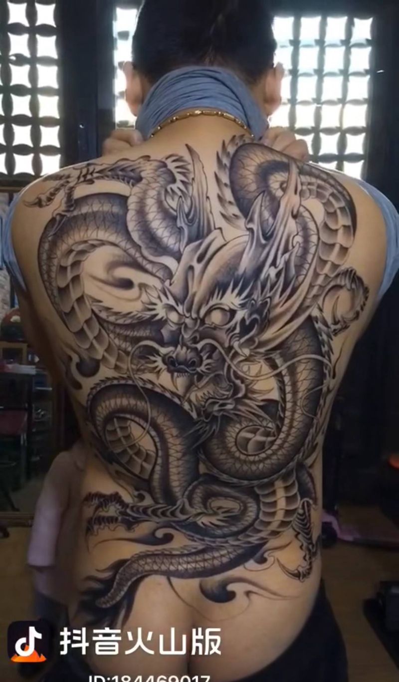 • T云龙九郎纹身图片_背部老传统云龙九郎纹身图案