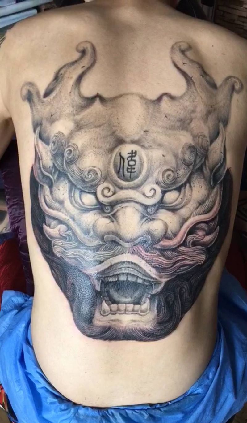 • 黑灰满背纹身图案