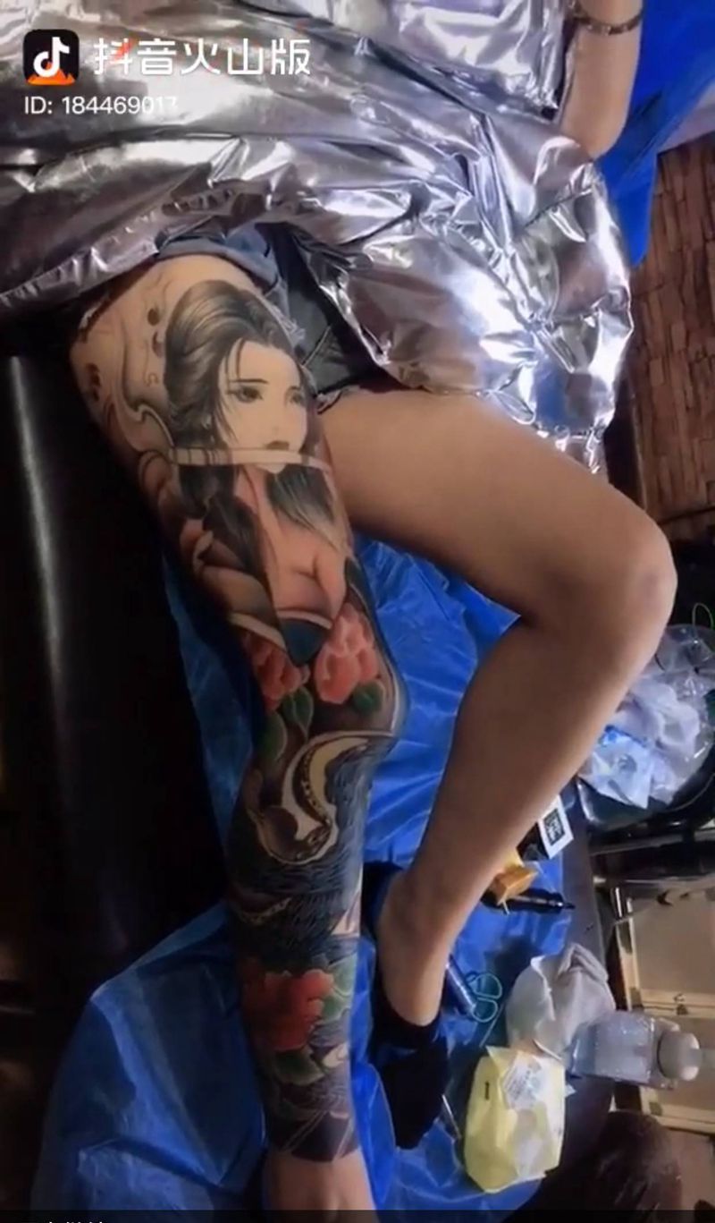 • T网红王老大花腿龙纹身图片_腿部新传统纹身图案