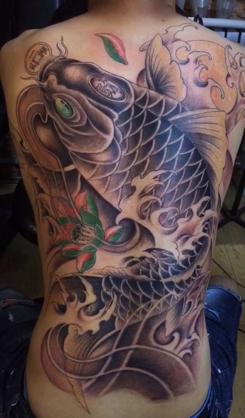 招财鱼纹身图片_新传统纹身图案