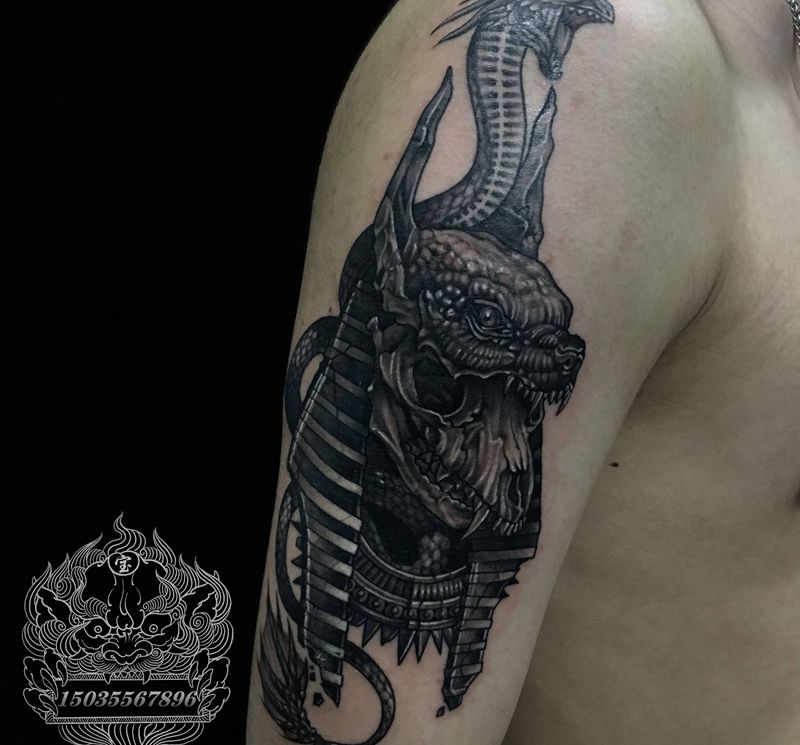 当前位置: 首页 >山西省长治市纹身店-刺青堂纹身纹身图案>阿努比斯纹身图片_手臂欧美写实阿努比斯狗头骷髅纹身图案
