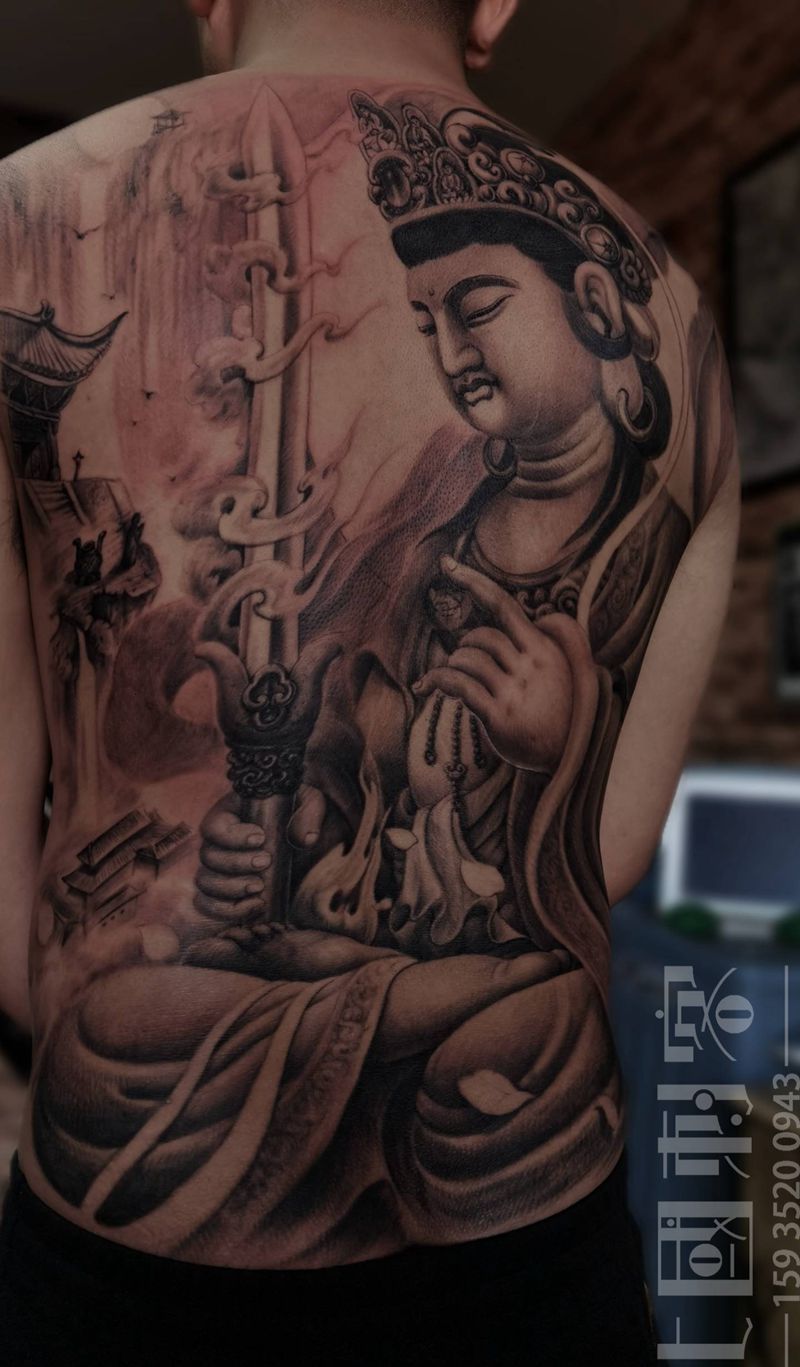 虚空藏纹身图片_臀部背部老传统新传统满背菩萨满背佛纹身图案