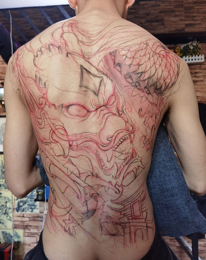 当前位置: 首页 >山西省大同市纹身店-大同老三纹身店纹身图案>鲤鱼跃龙门纹身图片_背部臀部新传统老传统龙鲤鱼纹身图案