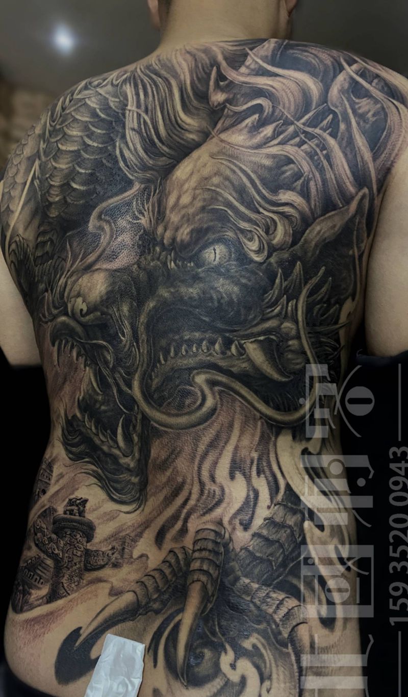 当前位置: 首页 >山西省大同市纹身店-大同老三纹身店纹身图案>龙满背纹身图片_背部新传统老传统龙长城纹身图案