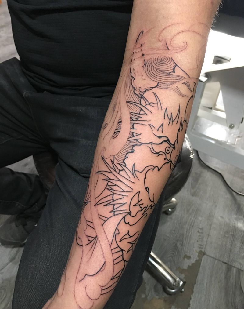• T网红王老大花腿龙纹身图片_腿部新传统纹身图案