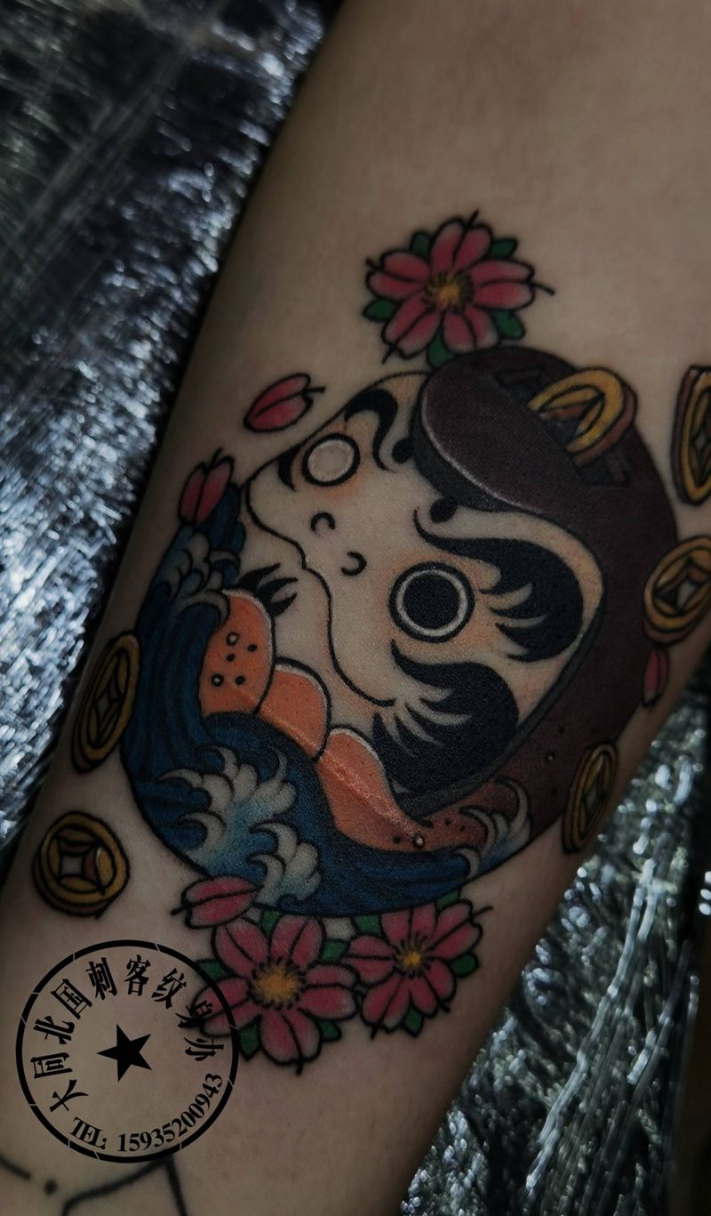 达摩蛋纹身图片_手臂老传统新传统日式纹身图案