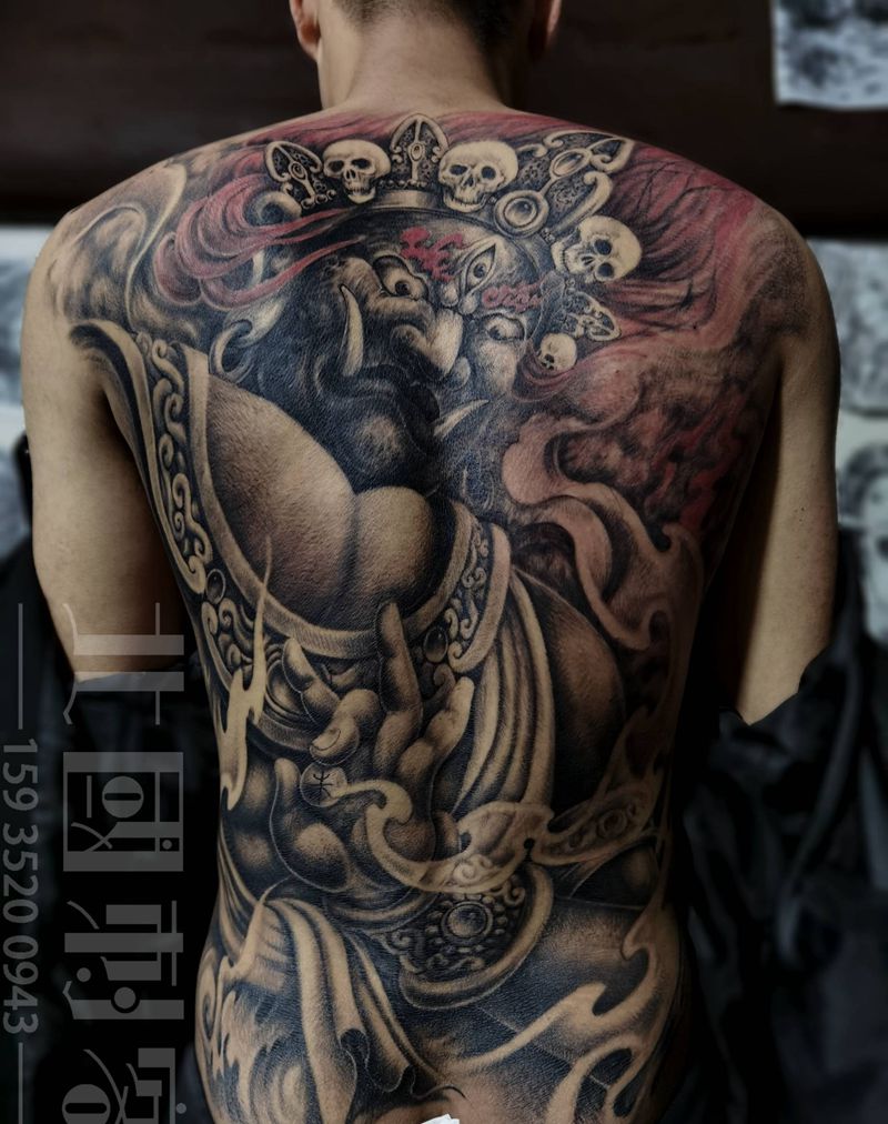 当前位置: 首页 >山西省大同市纹身店-大同老三纹身店纹身图案>大黑天纹身图片_臀部背部新传统老传统纹身图案