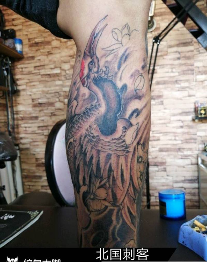 当前位置: 首页 >山西省大同市纹身店-大同老三纹身店纹身图案>仙鹤纹身图片_腿部脚部新传统老传统纹身图案