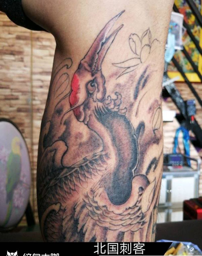 仙鹤纹身图片_腿部脚部新传统老传统纹身图案