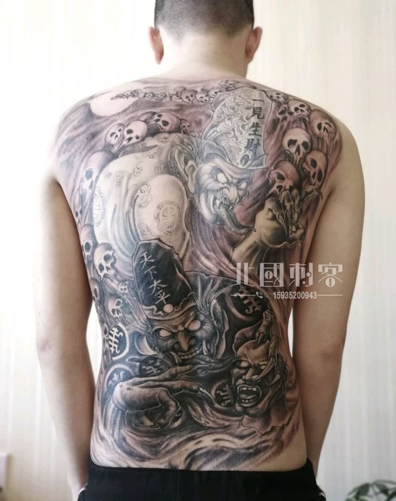 当前位置: 首页 >山西省大同市纹身店-大同老三纹身店纹身图案>黑白无常纹身图片_背部臀部新传统老传统纹身图案