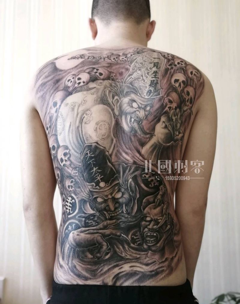 黑灰满背纹身图案