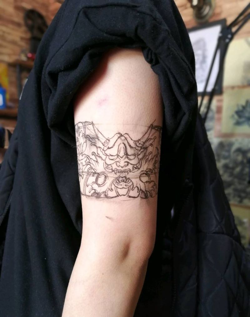 当前位置: 首页 >山西省大同市纹身店-大同老三纹身店纹身图案>日式臂环纹身图片_手臂手部老传统新传统臂环板雾纹身图案