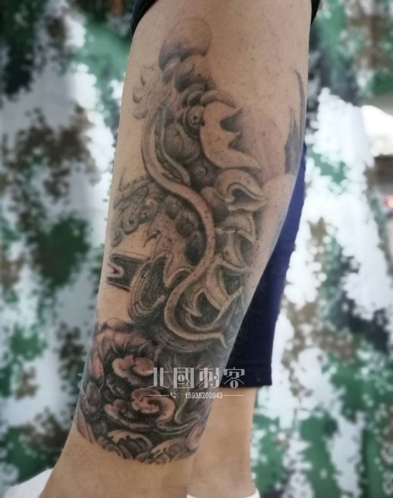 当前位置: 首页 >山西省大同市纹身店-大同老三纹身店纹身图案>石雕龙包小腿纹身图片_腿部新传统老传统纹身图案