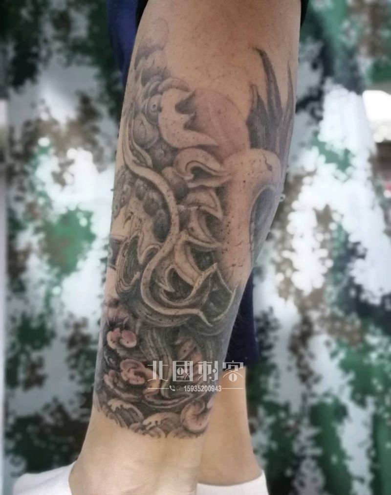 当前位置: 首页 >山西省大同市纹身店-大同老三纹身店纹身图案>石雕龙包小腿纹身图片_腿部新传统老传统纹身图案