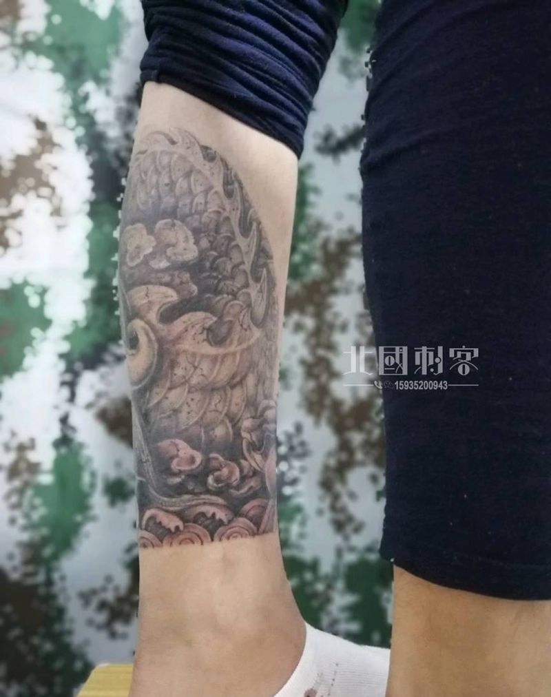当前位置: 首页 >山西省大同市纹身店-大同老三纹身店纹身图案>石雕龙包小腿纹身图片_腿部新传统老传统纹身图案