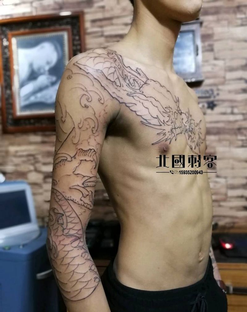 当前位置: 首页 >山西省大同市纹身店-大同老三纹身店纹身图案>过肩龙纹身图片_肩部胸部老传统新传统纹身图案