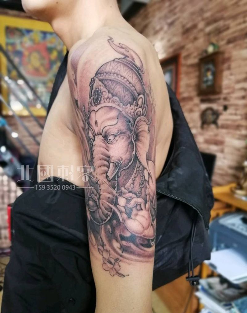 象神纹身图片_手臂手部新传统老传统象神大臂纹身大臂象神纹身图案