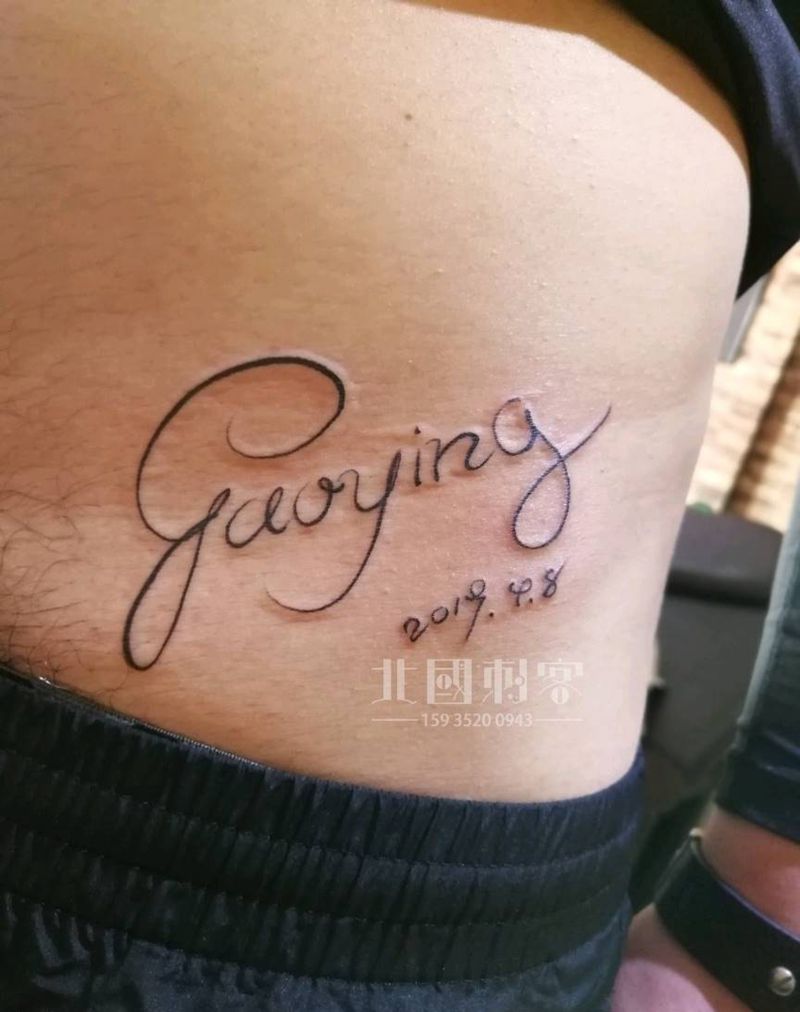 当前位置: 首页 >山西省大同市纹身店-大同老三纹身店纹身图案>英文纹身图片_腰部花体字英文纹身图案