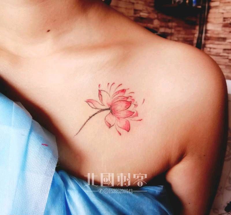 锁骨纹身纹身图片_肩部颈部水彩水墨锁骨纹身小清新纹身图案