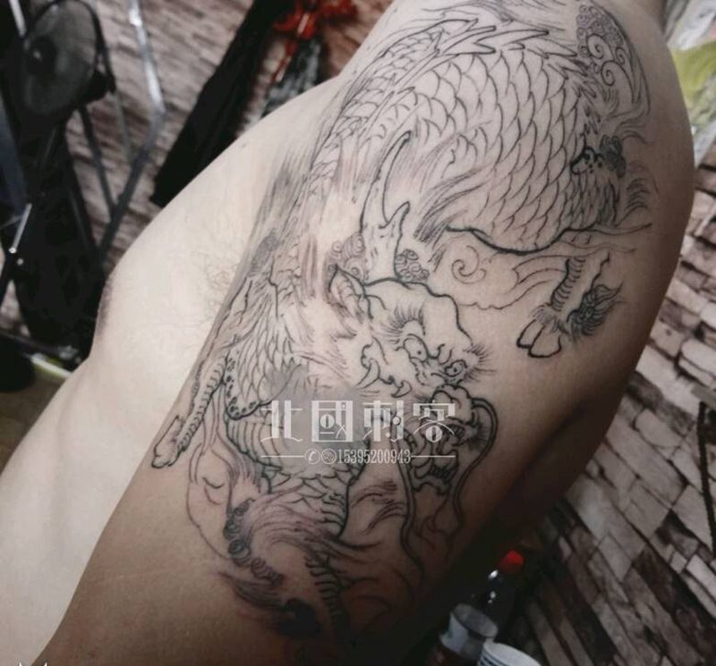 当前位置: 首页 >山西省大同市纹身店-大同老三纹身店纹身图案>麒麟纹身图片_手臂新传统纹身图案