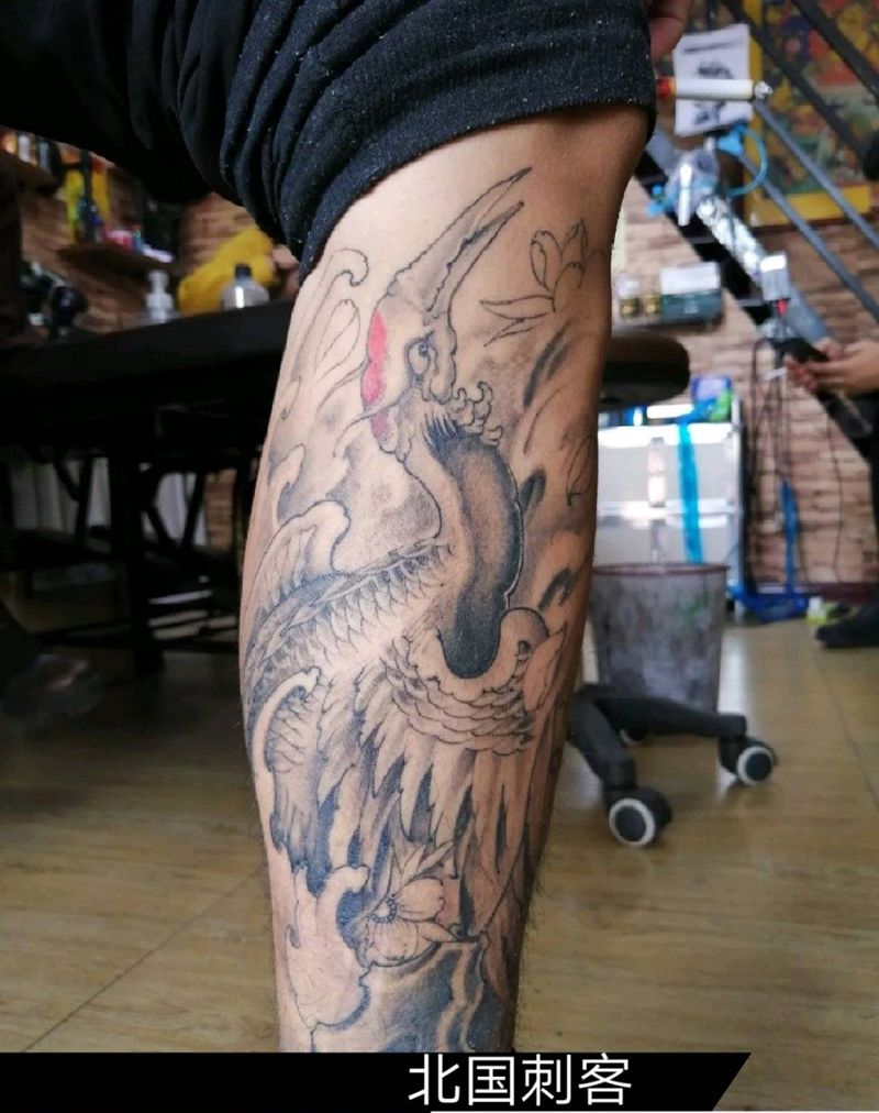 仙鹤 恢复后纹身图片_腿部脚部新传统老传统纹身图案
