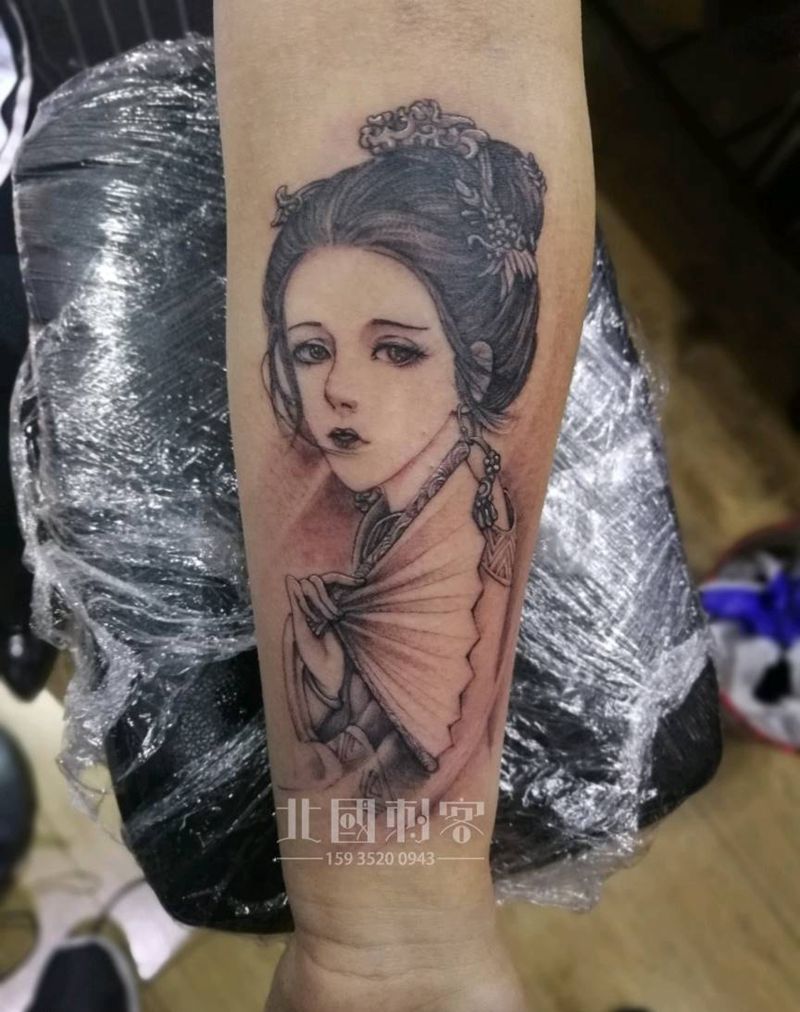 艺伎纹身图片_手部手臂新传统点刺纹身图案