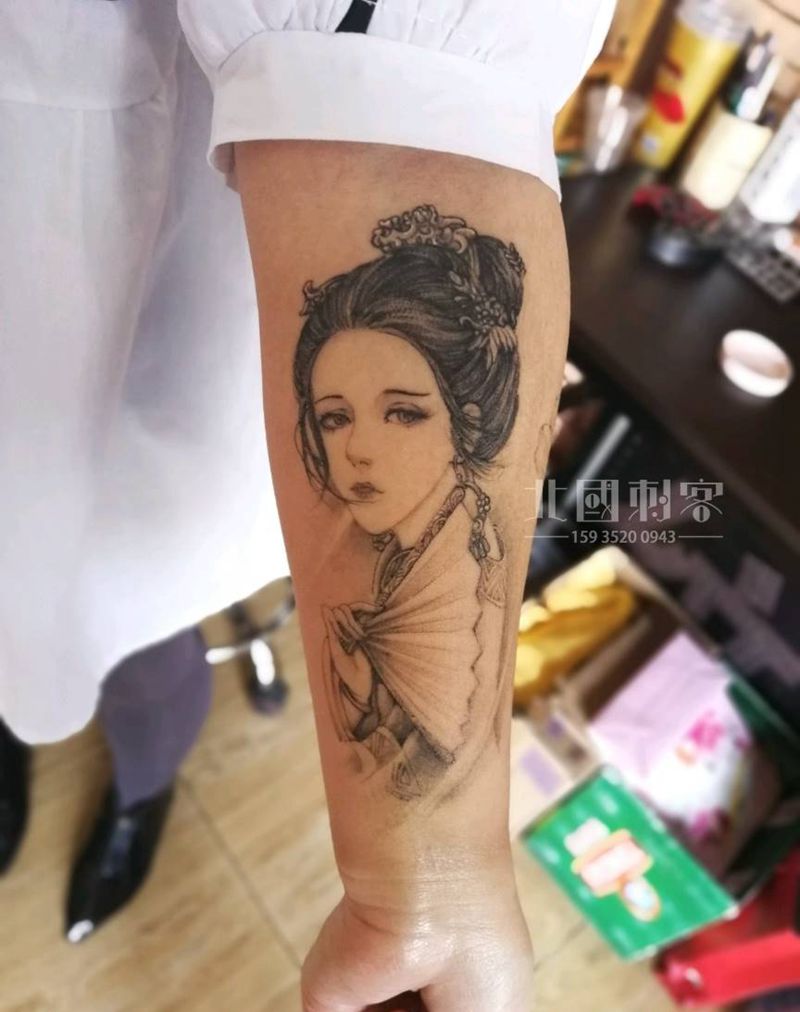 恢复后纹身图片_手部手臂新传统老传统艺伎小臂艺伎美女纹身图案