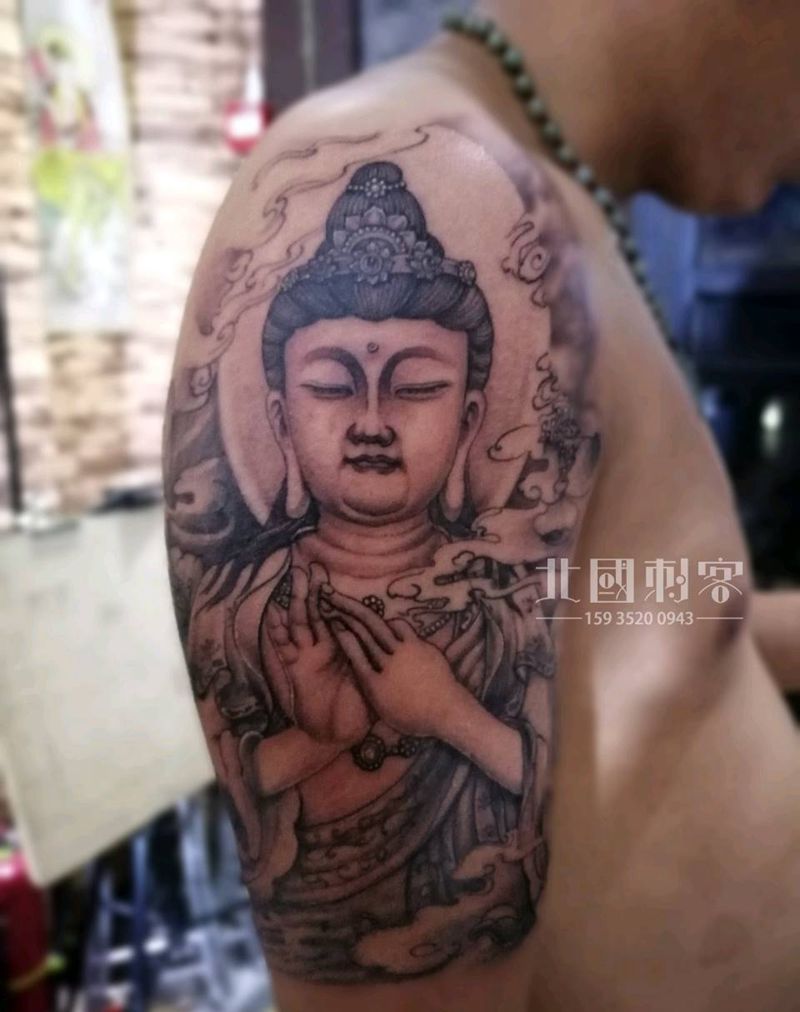 菩萨纹身图片_手臂肩部老传统新传统大臂菩萨菩萨纹身图案