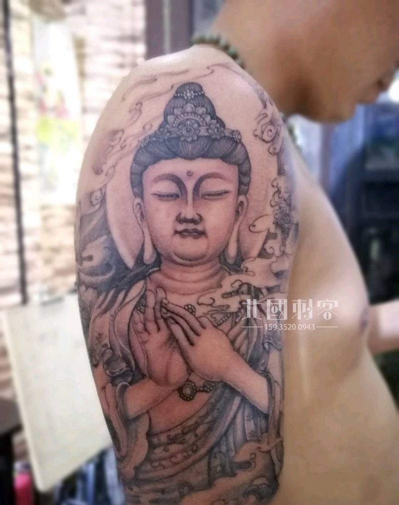 菩萨纹身图片_手臂肩部老传统新传统大臂菩萨菩萨纹身图案