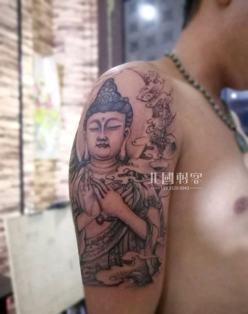 菩萨纹身图片_手臂肩部老传统新传统大臂菩萨菩萨纹身图案