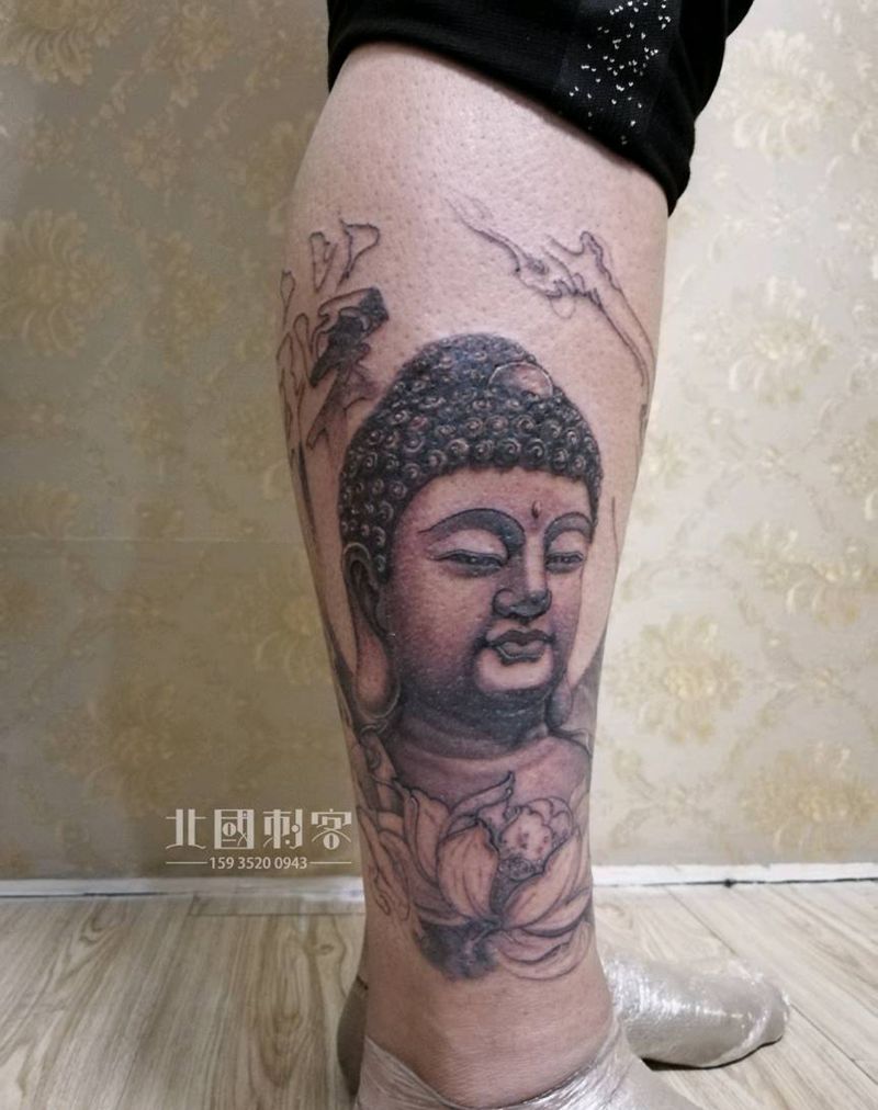 当前位置: 首页 >山西省大同市纹身店-大同老三纹身店纹身图案>阿弥陀佛纹身图片_脚部腿部欧美写实新传统佛小腿佛纹身图案