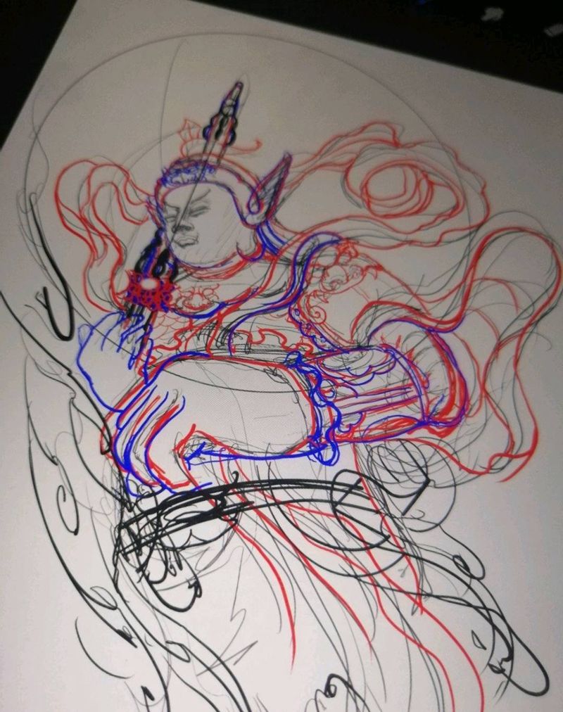韦陀菩萨手稿纹身图片_背部手臂新传统老传统韦陀菩萨纹身图案