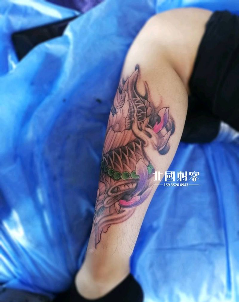 • T网红王老大花腿龙纹身图片_腿部新传统纹身图案