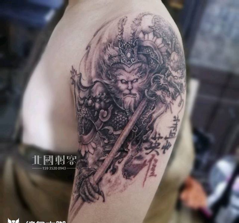 猴子纹身图片_手臂新传统老传统猴子美猴王孙悟空纹身图案