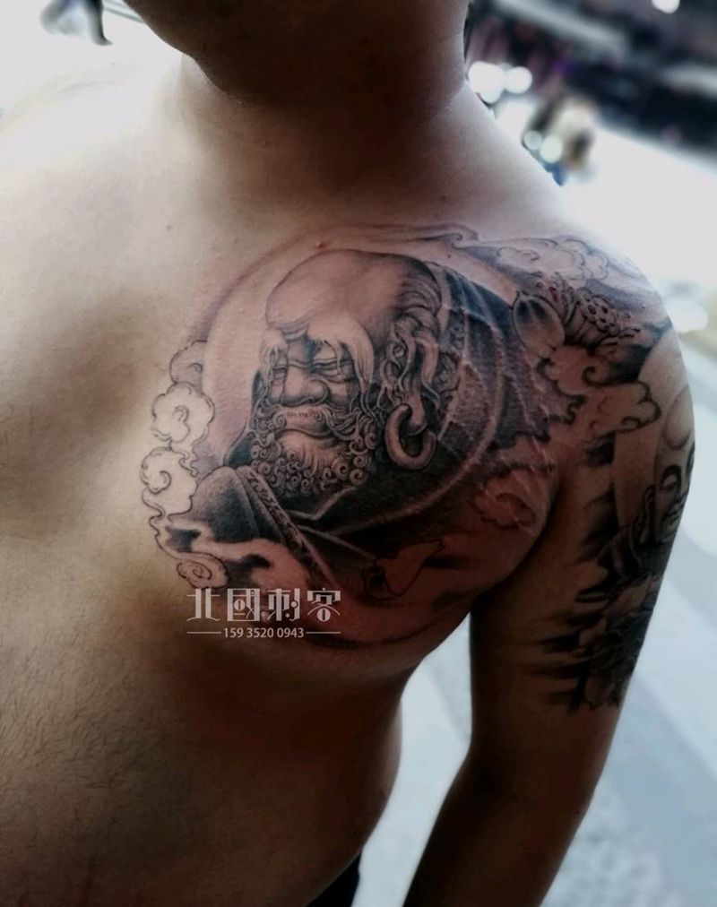 当前位置: 首页 >山西省大同市纹身店-大同老三纹身店纹身图案>达摩纹身图片_胸部肩部新传统老传统达摩纹身图案