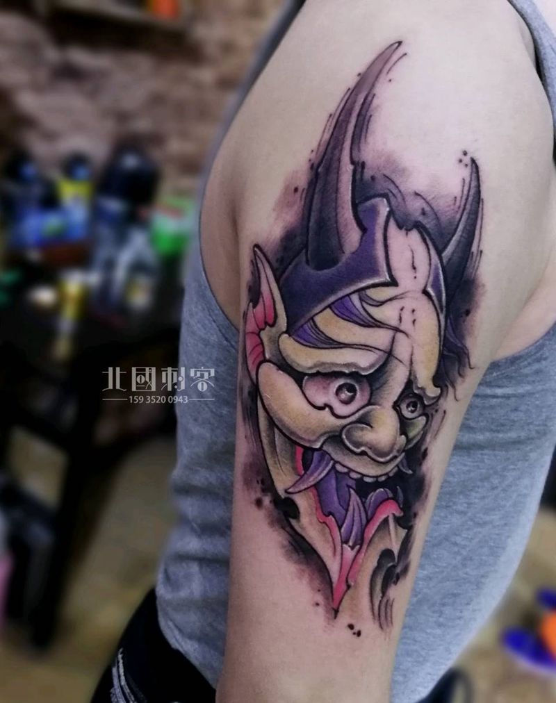 般若纹身图片_手臂肩部新传统New School彩色般若纹身图案