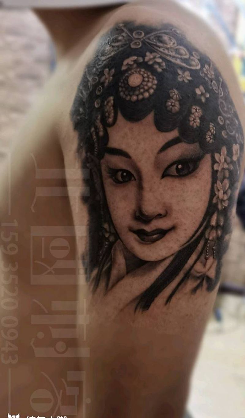 当前位置: 首页 >山西省大同市纹身店-大同老三纹身店纹身图案>青衣纹身图片_手臂新传统老传统花旦艺伎纹身图案