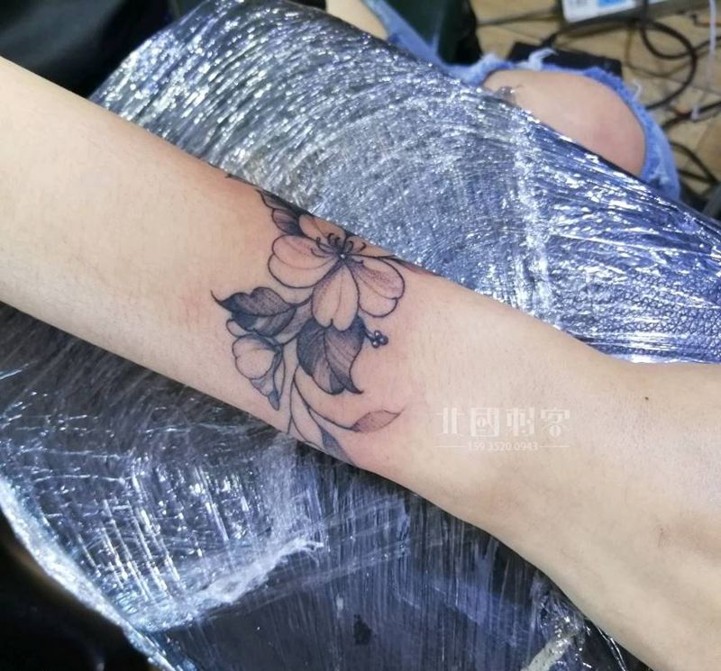 当前位置: 首页 >山西省大同市纹身店-大同老三纹身店纹身图案>素花手环纹身图片_手臂手部点刺几何素花臂环手环纹身图案