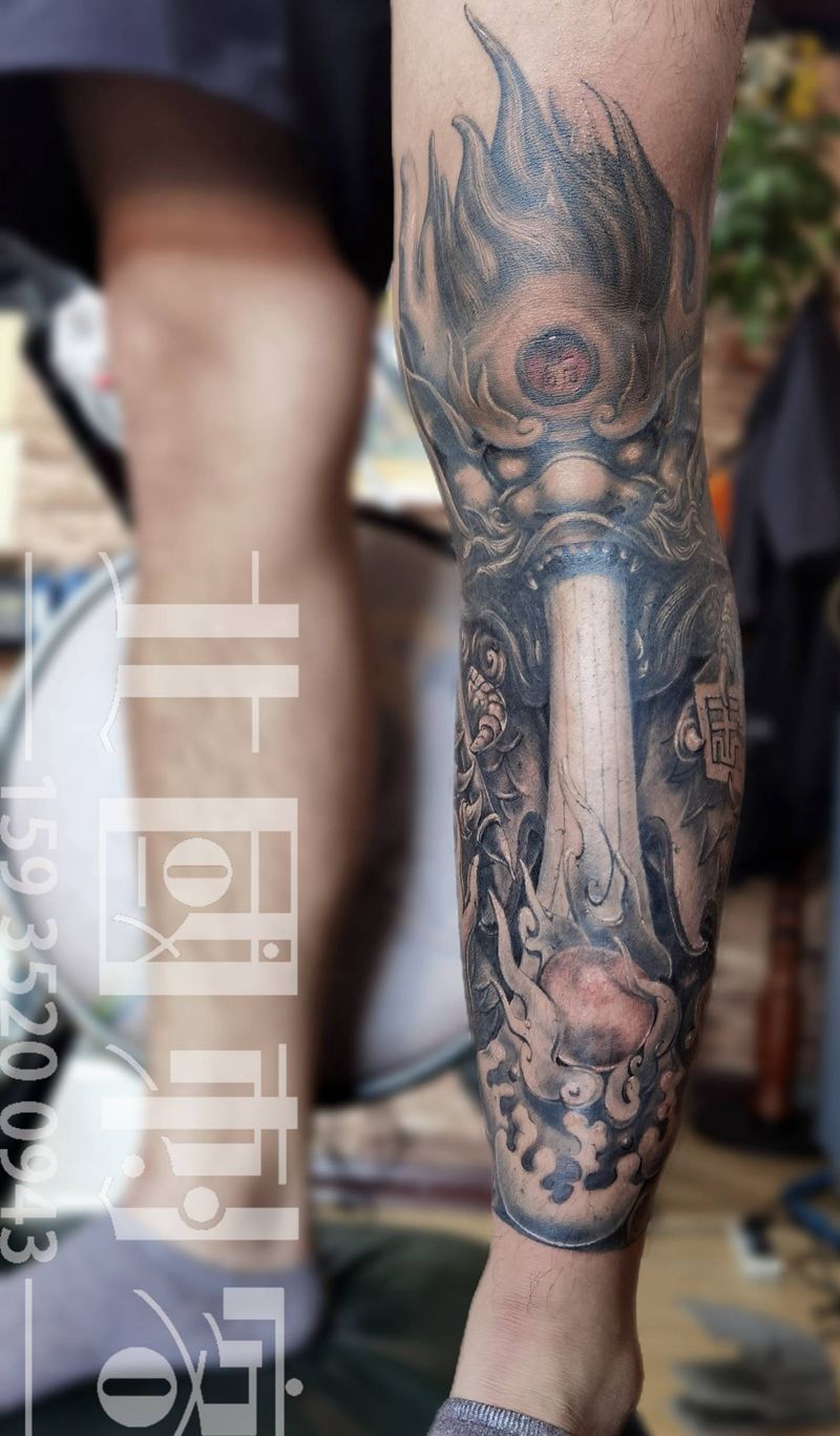 当前位置: 首页 >山西省大同市纹身店-大同老三纹身店纹身图案>石雕龙纹身图片_腿部脚部新传统老传统石雕包小腿纹身图案