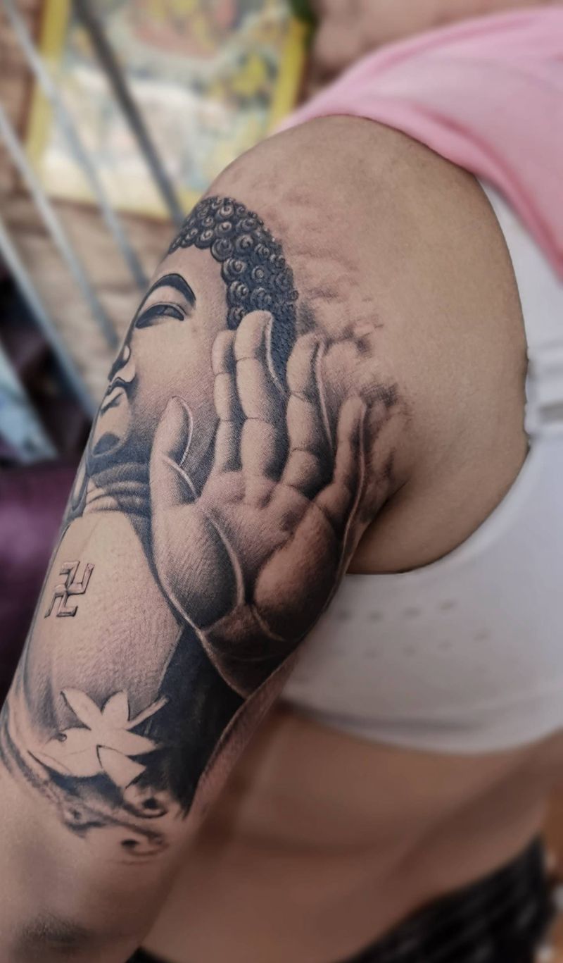 当前位置: 首页 >山西省大同市纹身店-大同老三纹身店纹身图案>大日如来纹身图片_手臂肩部新传统老传统大日如来佛阿弥陀佛纹身图案