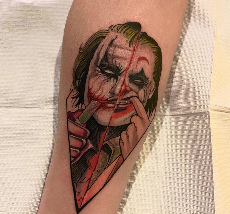 • T包小腿吹火男+阿多福纹身图片_腿部老传统新传统吹火男阿