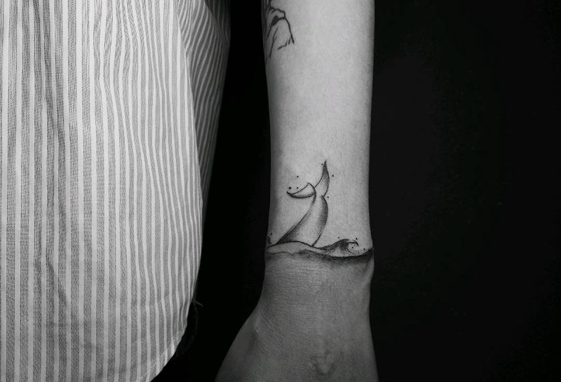 海浪 浪花纹身图片_手臂清新原创遮盖成品手稿纹身图案