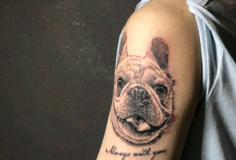 狗狗照片纹身图片_手臂肖像写实动物成品纹身图案