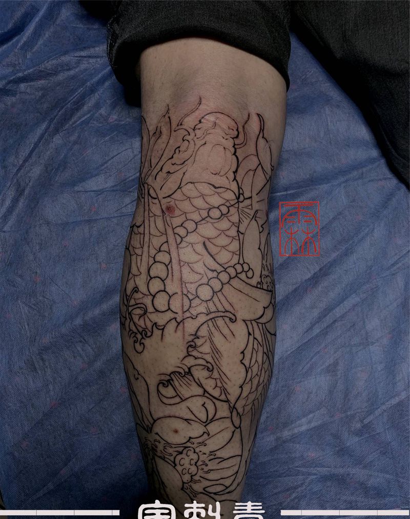 • T网红王老大花腿龙纹身图片_腿部新传统纹身图案