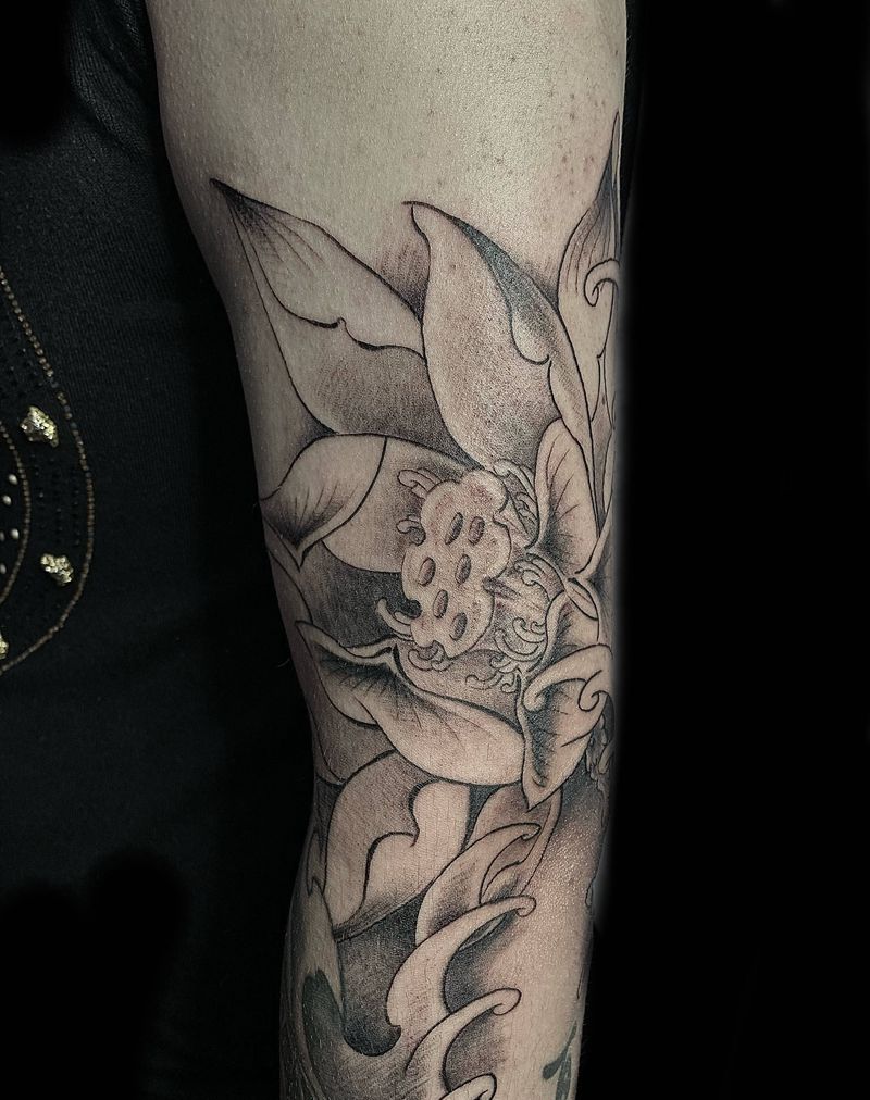 当前位置: 首页 >山西省晋城市纹身店-宇刺青纹身图案>荷花包字纹身图片_新传统纹身图案