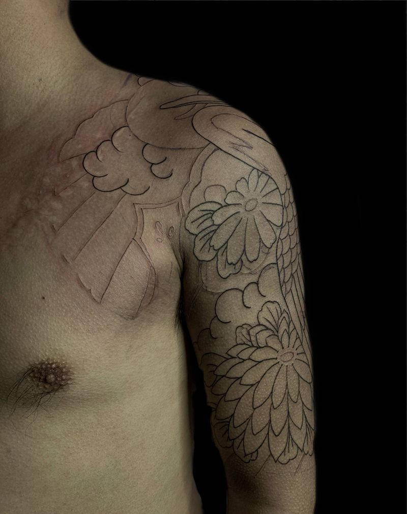 • 女性大花胸纹身_43张霸气漂亮的女性大花胸纹身图案作品