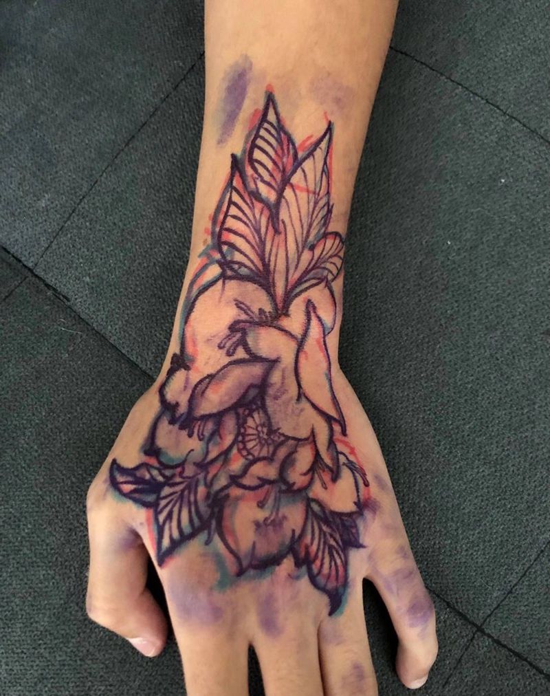 • 手背潮流时尚的玫瑰花眼睛纹身图案
