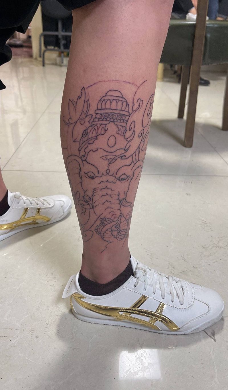 当前位置: 首页 >山西省大同市纹身店-尚道刺青纹身图案>小腿象神纹身图片_腿部新传统纹身图案